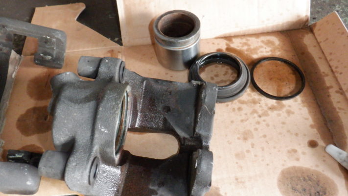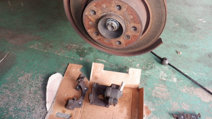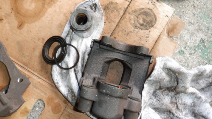 このまま放っておくと、隙間から雨水が侵入してブレーキが固着してしまう恐れがあるのでキャリパーのオーバーホールを行いました。
