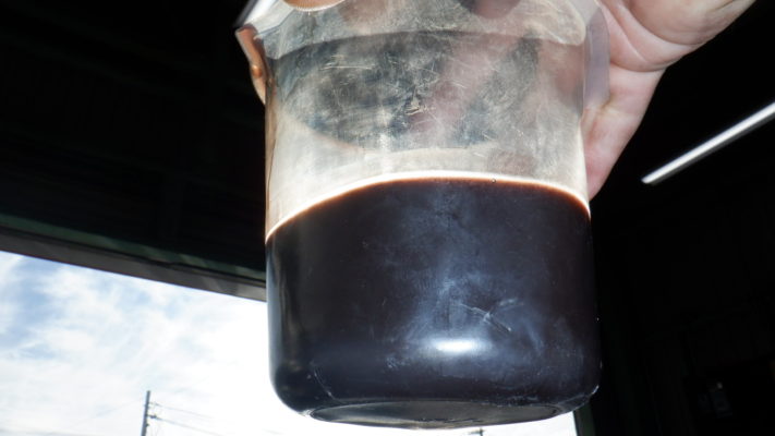 エンジンオイルも抜き取り、新しいオイルを注入しています。