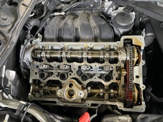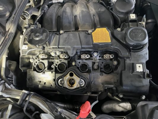↑直噴エンジン。 ヘッドカバーのガスケットよりオイル漏れもあるため、