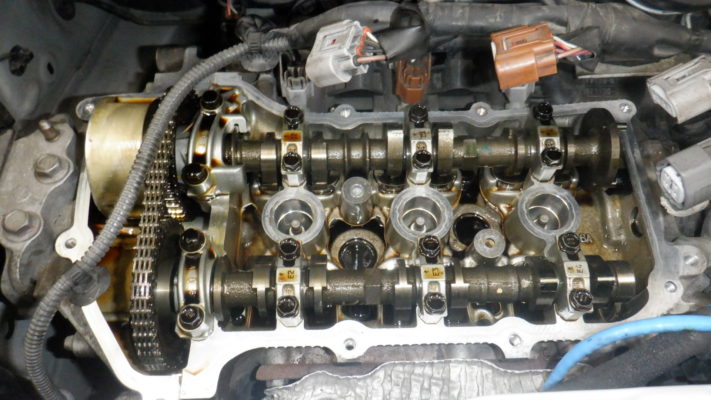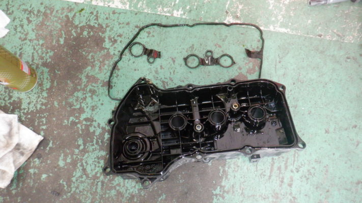 ヘッドカバーを取り外して交換します、ガスケットはパリパリです