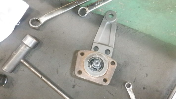 ↑フロント左のロアボールジョイントにガタがあり、