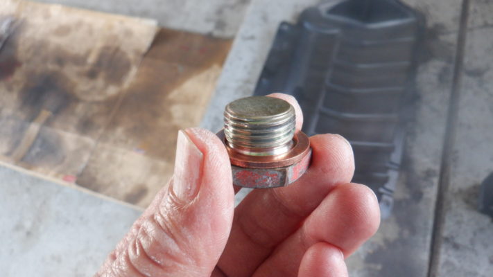 ↑エンジンオイルを排出し、