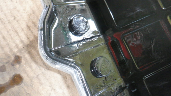 ↑オイルパン等を清掃後、新しいフィルター、ガスケットを組付け、