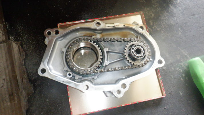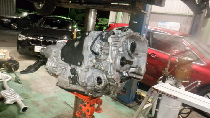 ミッションを取り外してオイル漏れ箇所の修理をします。
