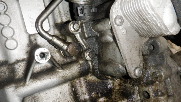 ↑オイルエレメントハウジングガスケットよりオイル漏れのため、フロントセクション外します。