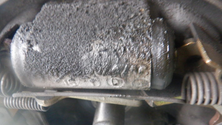R/ホイールシリンダーからブレーキオイルが漏れていたので修理しました。