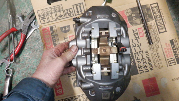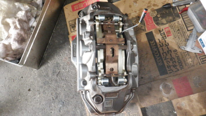 ↑フロント側は、6ポット各ピストンのサイズも違うので、サイズに合わせて組付け。