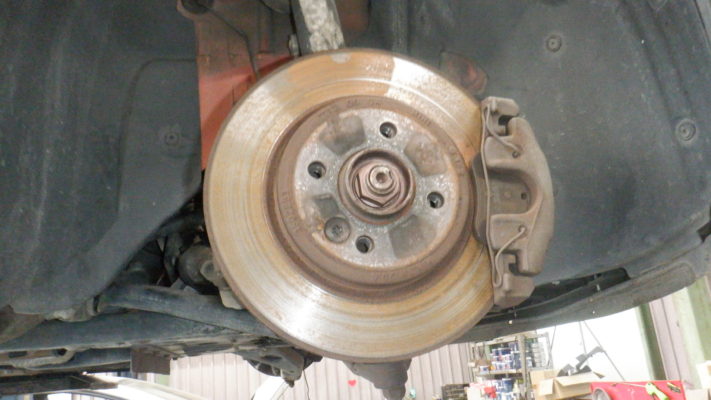 フロント・ブレーキ点検・清掃・ブレーキパット残量8.8mm