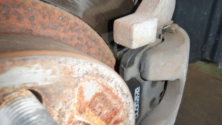 フロント・ブレーキ点検・清掃・ブレーキパット残量7.7mm