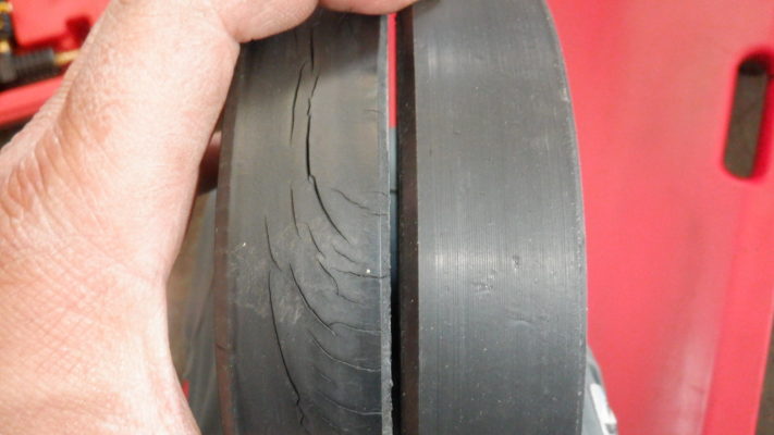 ↑プーリーのひび割れもあり、同時交換が好ましい。