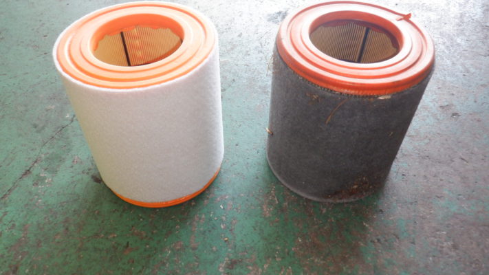 ↑エアエレメントの交換。 ケースを外すとゴミが見えている状態でした。