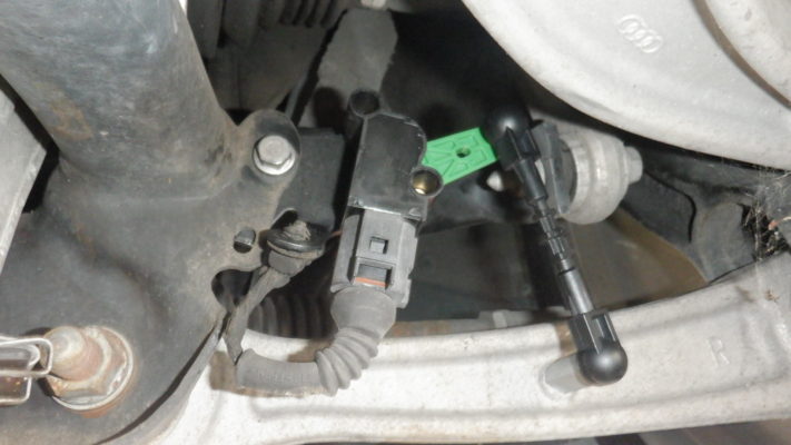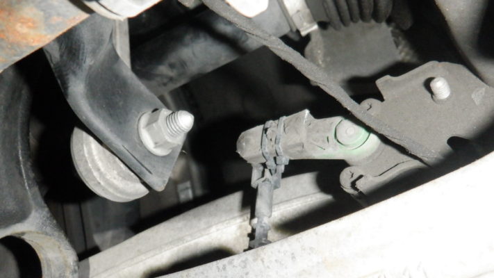 ↑フロント右側のレベルセンサーは、タイラップで固定してあるため、