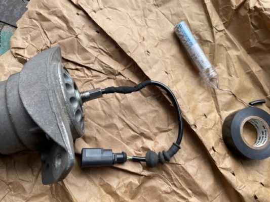 ↑配線を途中でカットしてあるため、半田で結線し、