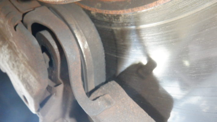 リヤ・ブレーキ点検・清掃・ブレーキパット残量9.8mm
