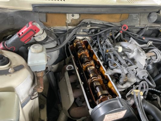 ↑ヘッドカバーからのオイル漏れのため、カバーを外し、