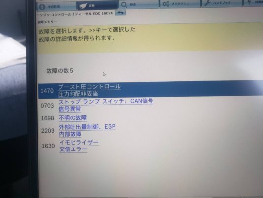 故障コードを読み出すと、ターボのエラーが入力されていました。