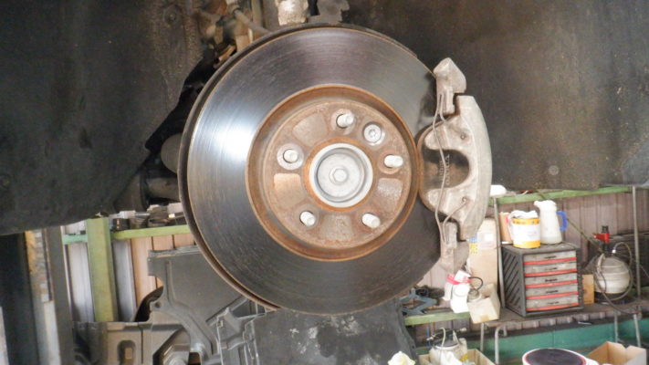 フロント・ブレーキ点検・清掃・ブレーキパット残量6.1mm