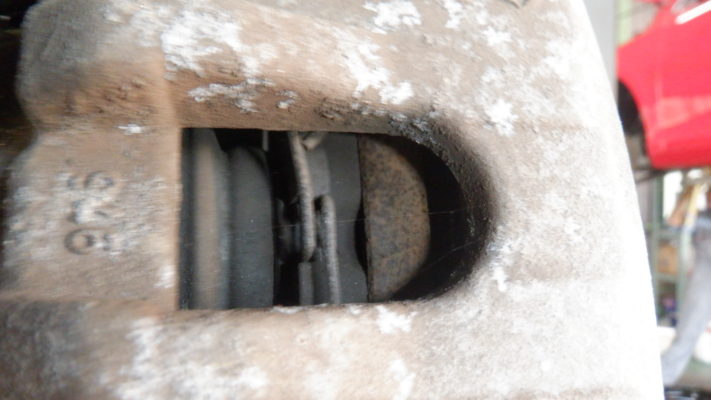 リヤ・ブレーキ点検・清掃・ブレーキパット残量5.5mm