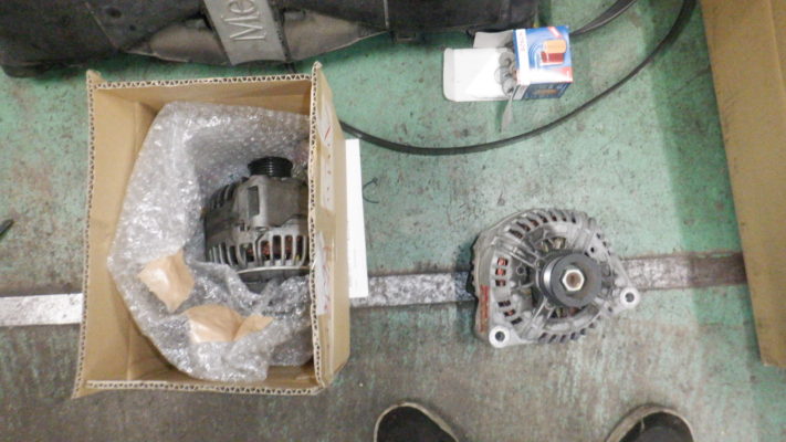 エンジン始動中ガラガラ異音→ベルトを外すと異音はしないのでプーリーが原因なので確認するとオルタネーターのプーリーにガタが出ていました→オルタネーター交換しました。