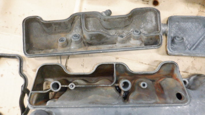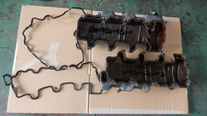 新しいヘッドカバーのガスケットと液体ガスケットで組み付けます。