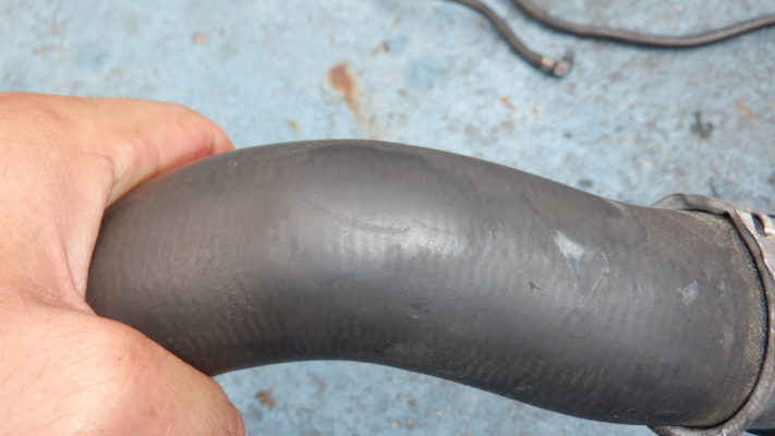 少しわかりにくいですが、ラジエータ・アッパーホースは軽油がかかった影響で