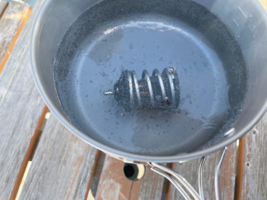 ↑開いている様子。 中心の心棒は車両側に当たるので、開いている状態