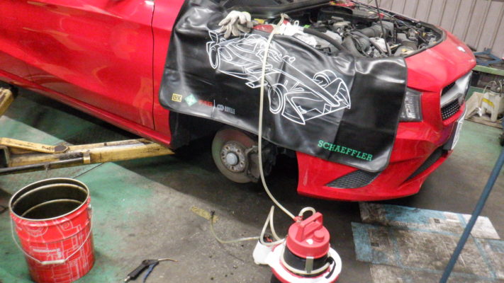 ↑ブレーキフルードは、車検ごとの交換となり加圧しながら交換しました。