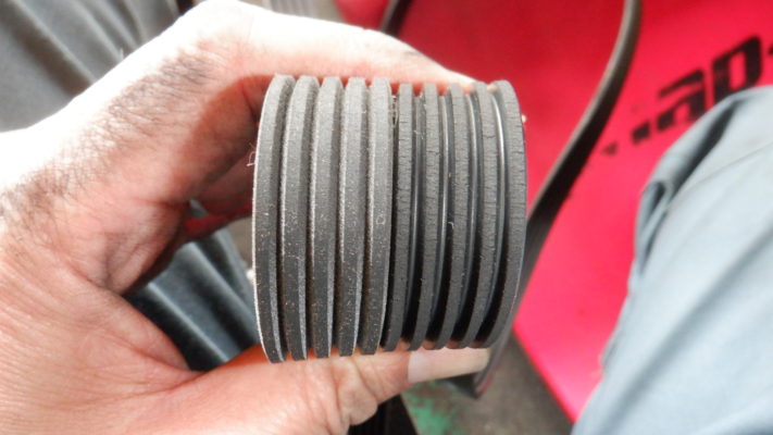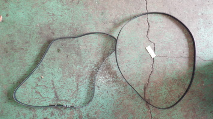 ↑外したベルト(左側)は、少しひび割れが目立ち交換時期でした。