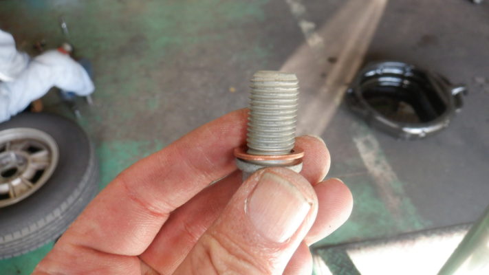 ↑オイルドレンガスケットを新品にし規定トルクで締め付け。