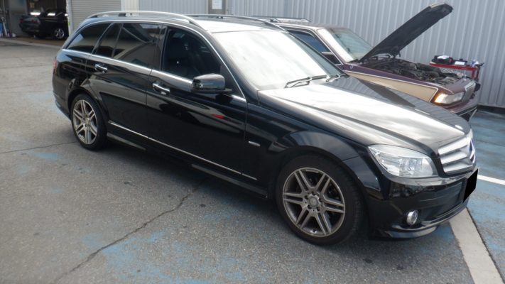 J様、ベンツCクラス、リアタイヤ交換とオイル交換。