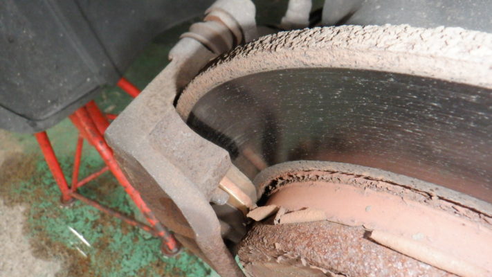 フロント・ブレーキ点検・清掃・ブレーキパット残量6.6mm