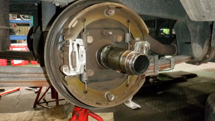 リヤ・ブレーキ点検・清掃・ブレーキライニング残量5mm以上残っています。