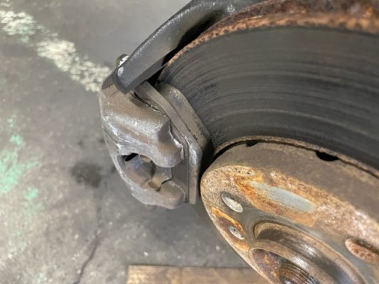 ↑フロントブレーキパッドの残量、約10.0mm。
