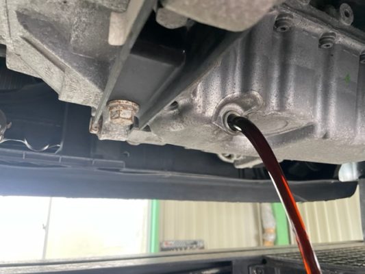 ↑エンジンオイルを排出し、