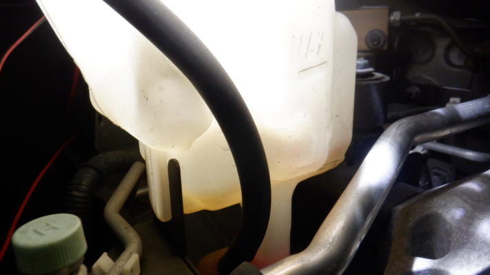サブタンクとラジエータに1リットル補充して漏れの点検を行いましたが