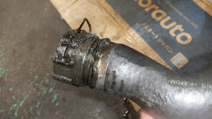 ハウジング回りの冷却水ホースも傷んでいるので同時に交換しました。