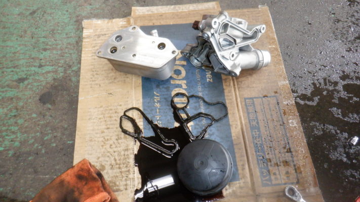 オイルエレメントハウジングから漏れていたので、各ガスケットを交換していきます。