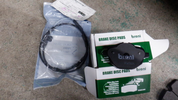 電子サイドブレーキなので診断機をつなぎ、パッド交換モードにして作業を行いました。