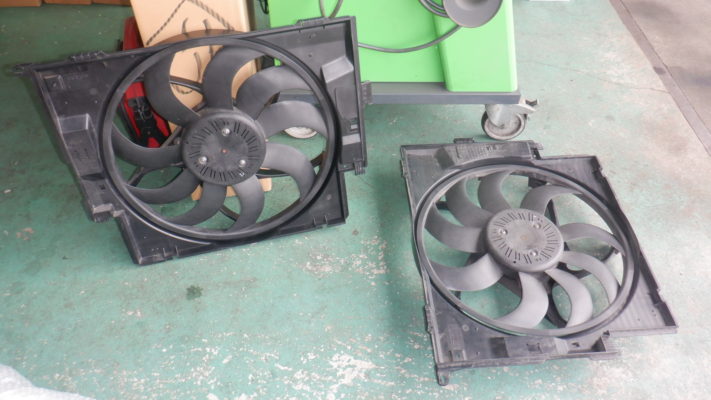電動ファンは中古部品で交換しました。(左が取り付ける電ファン)