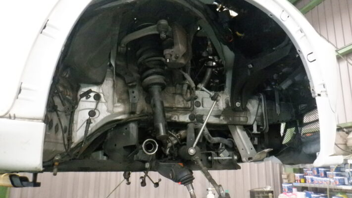 エンジンオイルの漏れと足回りからの異音でご入庫です。