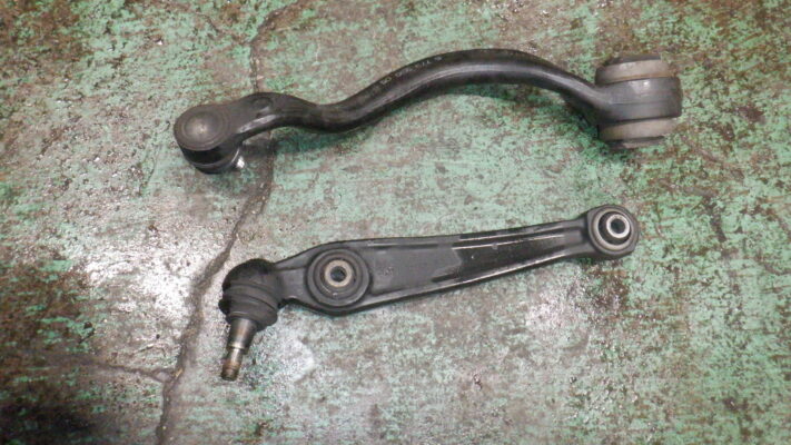 足回りの異音はロアアーム(写真下側)のボールジョイントが原因でした。