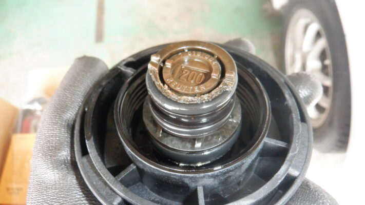冷却水を補充する為、タンクのキャップを開けると先端がかけていました。