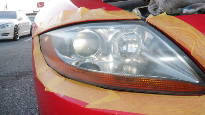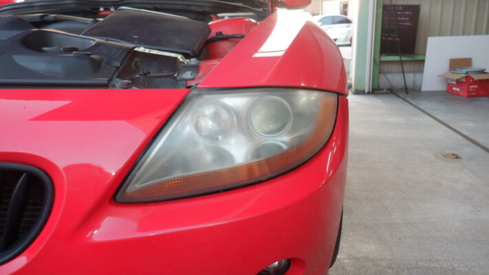 ヘッドライトの曇りが気になるという御相談を受けたので、左右ヘッドライトを磨きました。