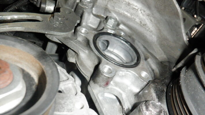 ウォーターポンプにガタツキと冷却水が漏れた形跡を発見したので交換します。
