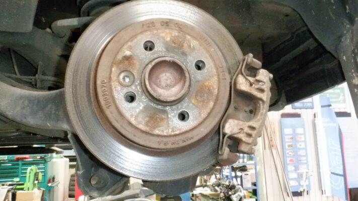 リヤ・ブレーキ点検・ブレーキパット残量9.4mm