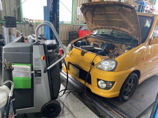 N様、プレオ、エアコン点検。 点検するとガスが抜けきっていました。 ↑補充後は、蛍光剤も一緒に入れました。 ↑復活です。 H様、ワゴンR、エンジンオイル交換。 次回交換は、135100kmです。 ご入庫いただき、ありがとうございました。