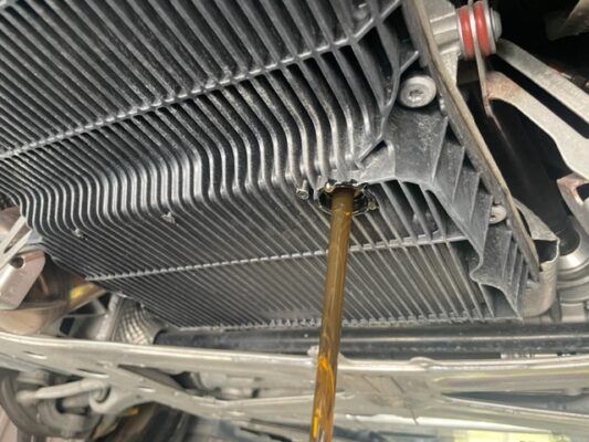 ↑ドレンを外すとかなりのオイル量が抜けてきます。