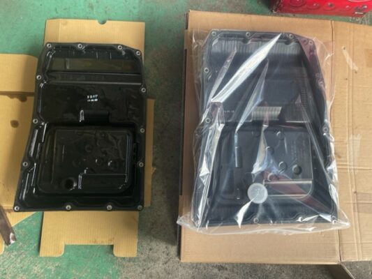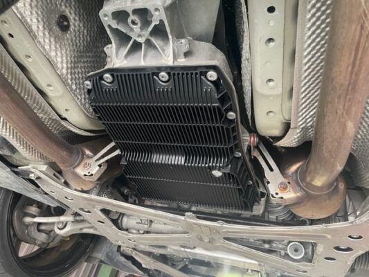↑フィルター一体タイプのオイルパンを外しますので、ミッションマウント