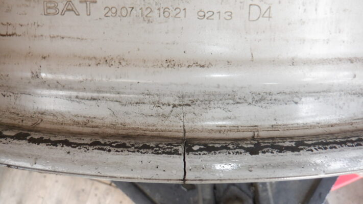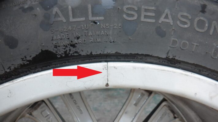 塗装が割れているだけかなと思いましたがホイールが割れていました。