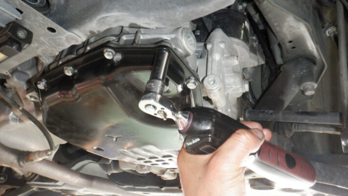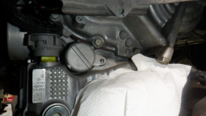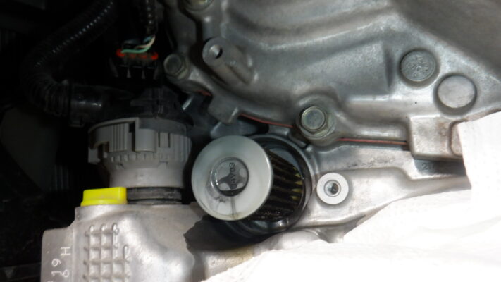 フィルター交換後は逆の手順で取り付けてCVTオイルを充填